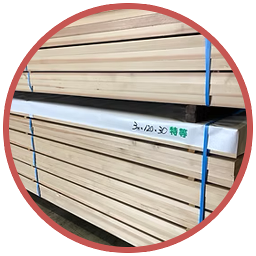 環境にやさしく、品質性に優れた 「国産無垢」の大径構造材、羽柄材、 造作材を豊富にラインナップ
