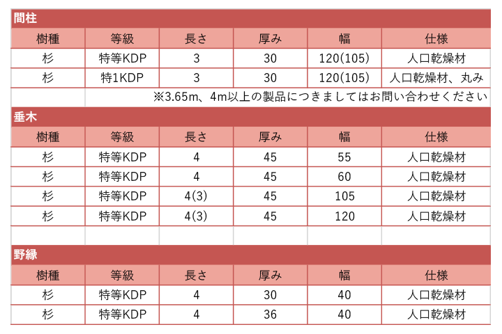 環境にやさしく、品質性に優れた 「国産無垢」の大径構造材、羽柄材、造作材を豊富にラインナップ